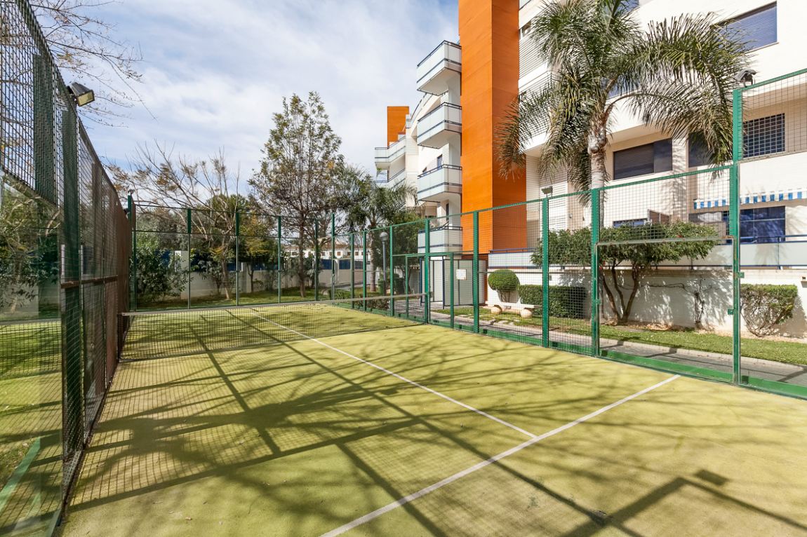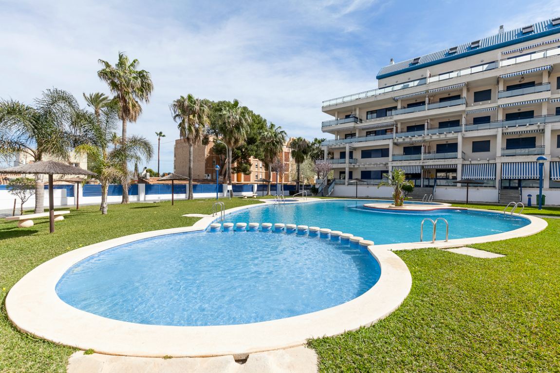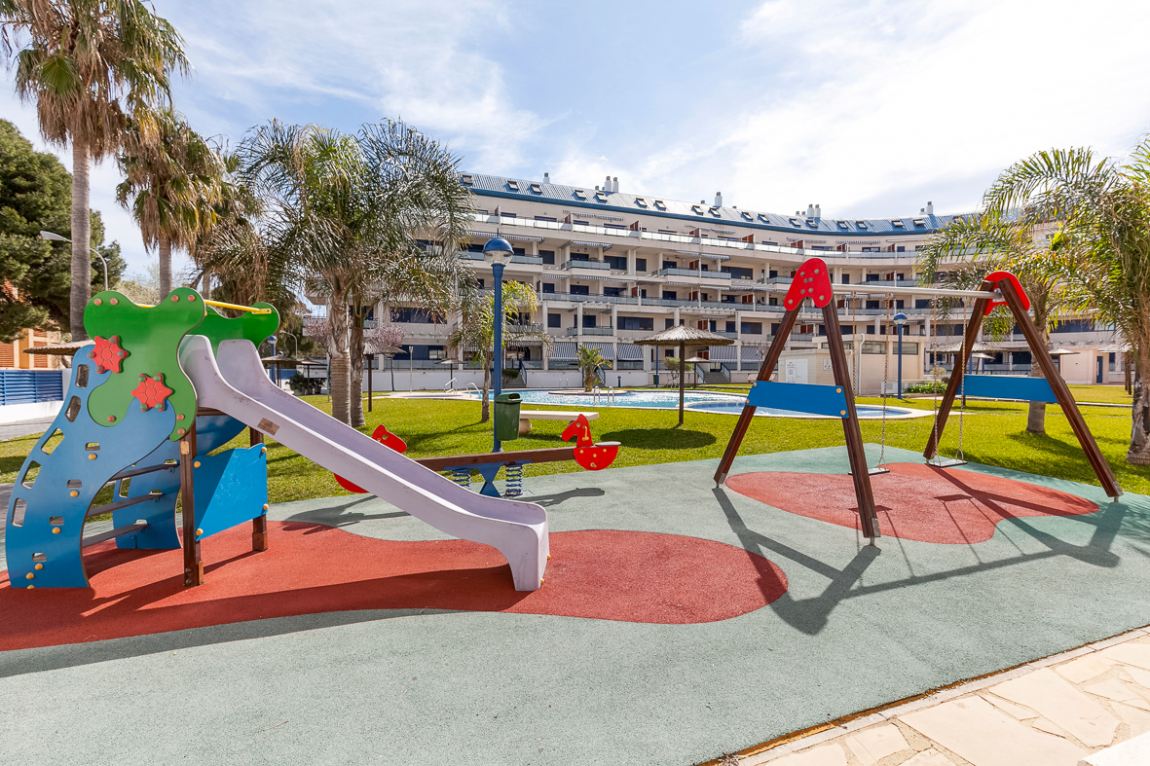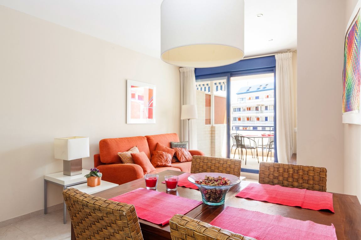 Moderno apartamento para cuatro personas a escasos metros de la playa de arena de la Marineta en Dénia. Está ubicado en un acogedor complejo residencial con piscina comunitaria, parque infantil y pista de pádel, sauna y gimnasio, perfecto para familias con niños. El apartamento tiene 80 m2 distribuidos en una habitación de matrimonio con cama de 150cm, habitación con dos camas de 90cm, cocina independiente, lavadero con lavadora y tendedero, salón comedor con salida una amplia terraza con vistas a las zonas comunes y al mar. Incluye plaza de garaje subterráneo con acceso directo a la vivienda. Wifi y aire acondicionado por conductos.