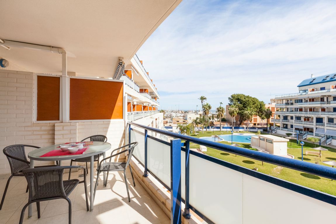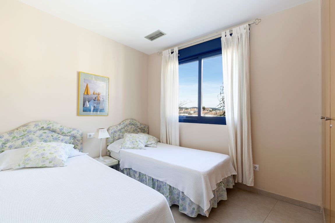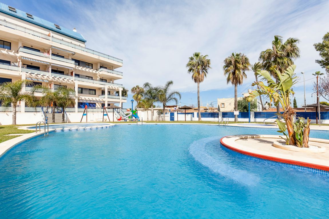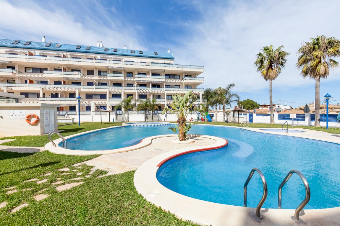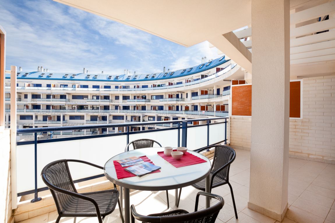 Moderno apartamento para cuatro personas a escasos metros de la playa de arena de la Marineta en Dénia. Está ubicado en un acogedor complejo residencial con piscina comunitaria, parque infantil y pista de pádel, sauna y gimnasio, perfecto para familias con niños. El apartamento tiene 80 m2 distribuidos en una habitación de matrimonio con cama de 150cm, habitación con dos camas de 90cm, cocina independiente, lavadero con lavadora y tendedero, salón comedor con salida una amplia terraza con vistas a las zonas comunes y al mar. Incluye plaza de garaje subterráneo con acceso directo a la vivienda. Wifi y aire acondicionado por conductos.