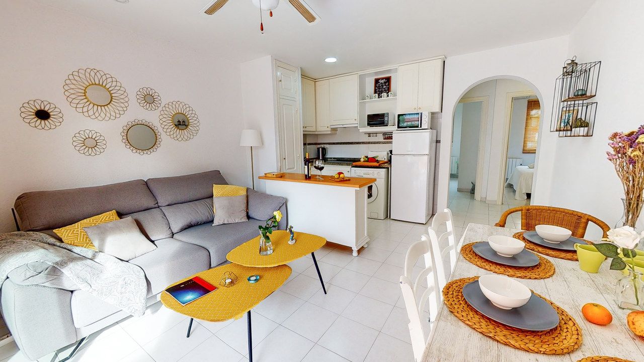 Excepcional!! El apartamento está decorado con mucho gusto, está todo reformado, incluso tiene persiana automática en salón, es muy práctico y cómodo, es planta baja, sales directo al jardín común, hay una puerta de separación desde la terraza al jardín y piscina, lo que nos vino genial para los niños. La cocina es abierta pero está bien equipada. Hay cafetera Nespresso y dejan cápsulas. Tienen juegos de mesa, parchís, cartas, dados, palillos, tangram y otros. El sofá se abre hacia fuera sin hacerse cama pero se queda enorme. La terraza es fantástica, soleada y tiene un gran toldo. Está super cerca de la playa y hay un parque de niños en la arena. La urbanización es tranquila, hay pocas viviendas, tiene una gran piscina y otra pequeña piscina infantil muy poco profunda. El apartamento está impecable, muy limpio, las toallas son de calidad y el colchón y las almohadas también, cosa que siempre tengo en cuenta yo. El recibimiento del propietario, muy acogedor. Hay también sillas de playa y TV pantalla plana grande con Yomvi. La verdad que nos gustó todo, está genial! No nos gustó el tener que irnos! :(