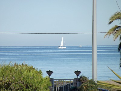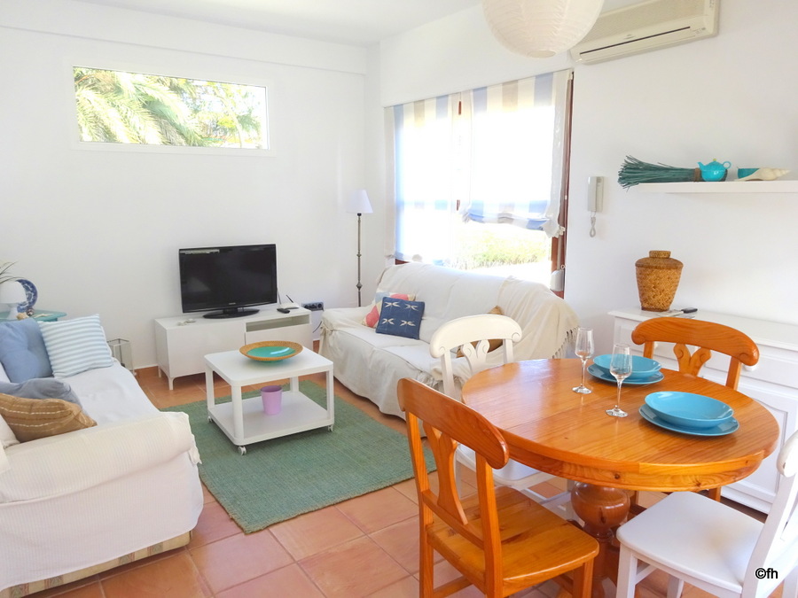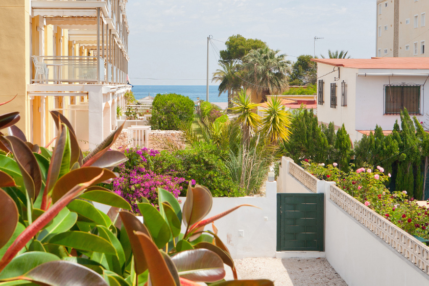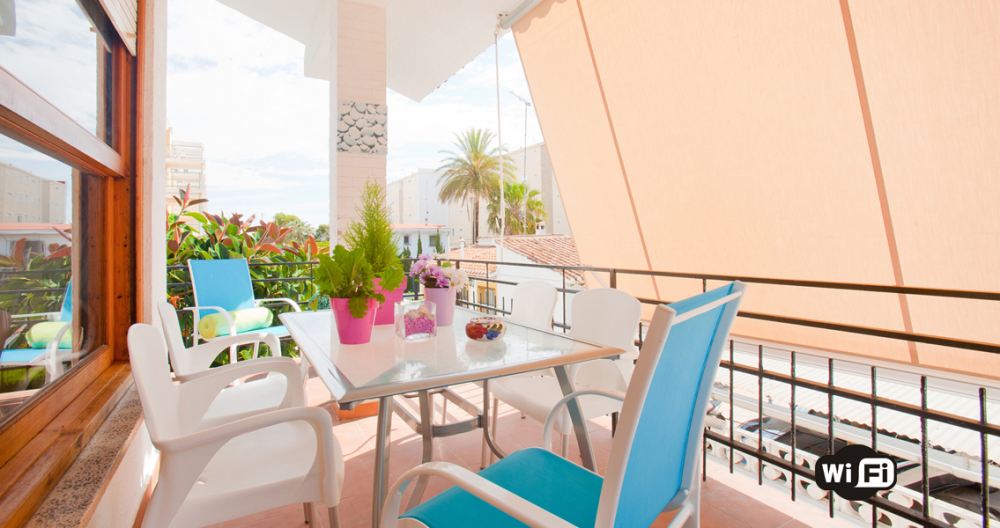 Este moderno y luminoso apartamento está en primera línea de playa, a tan solo 50 metros con acceso directo a la arena. Dispone de tres habitaciones dobles, una con cama de matrimonio de 150 cm, y las otras dos con camas de 90 cm, baño con ducha, un aseo y cocina completamente equipada. Su amplio salón comedor tiene acceso a una magnífica terraza exterior con vistas al mar, dispone también de una segunda terraza-solarium con orientación sur. La vivienda cuenta con aire acondicionado, wifi, tv satélite, barbacoa y parking privado.