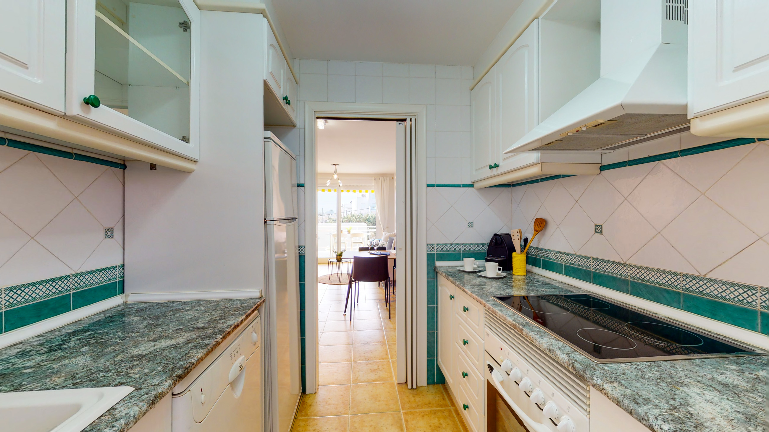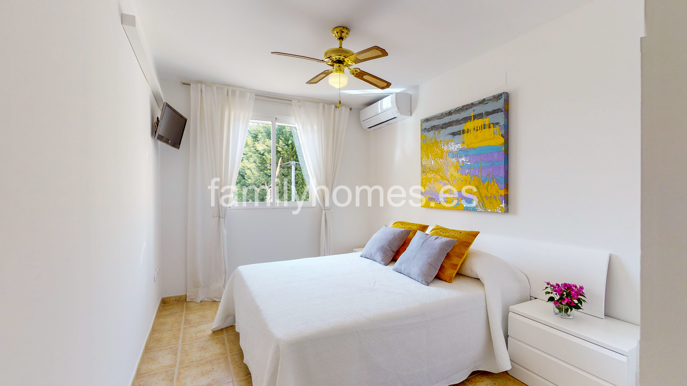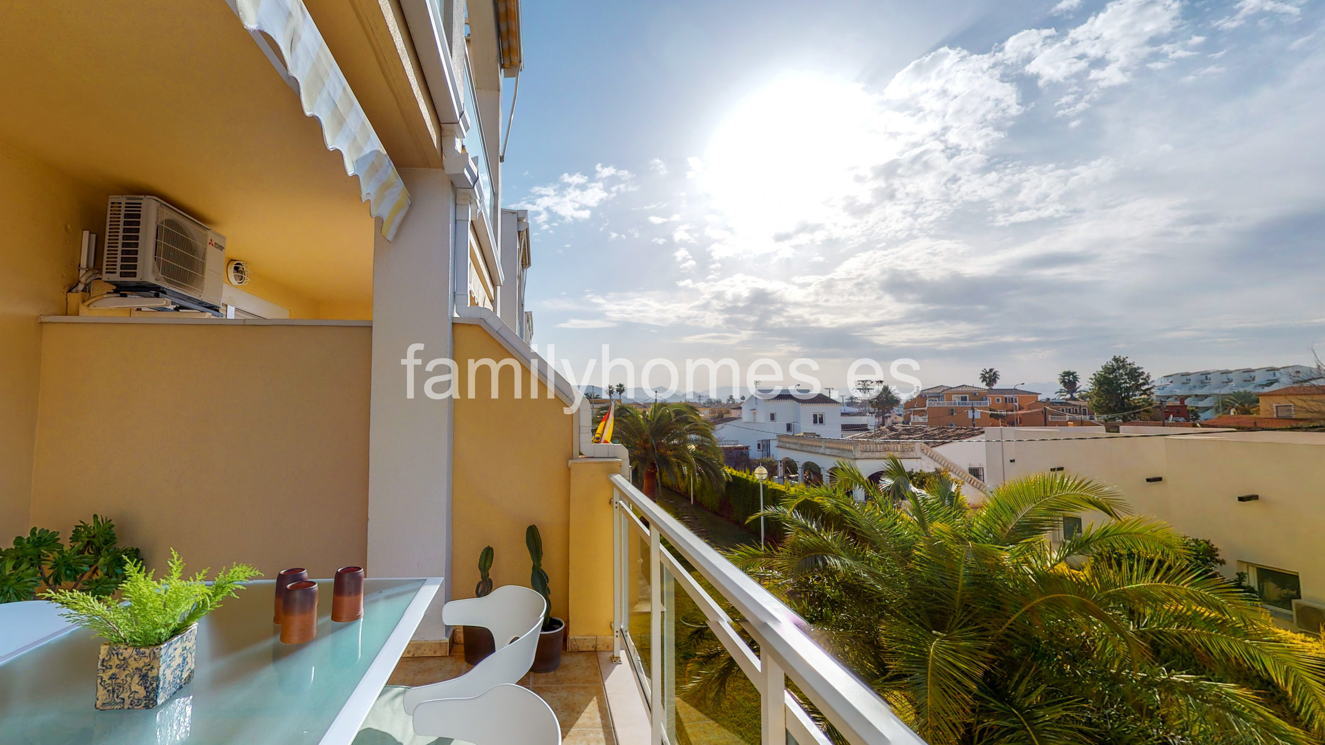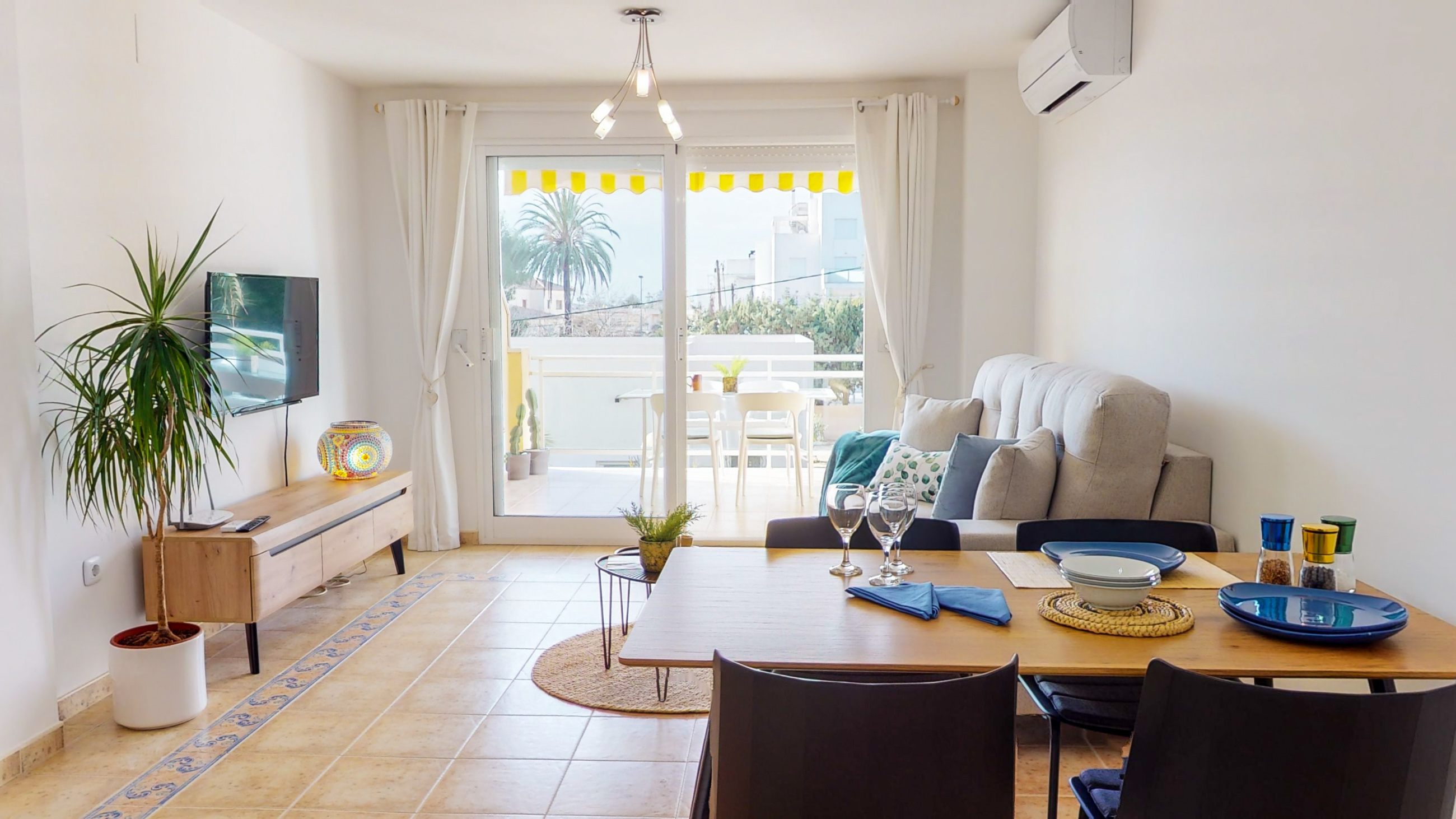 Fabuloso apartamento para 4 personas a tan solo 250m de la playa de arena y 800m del puerto de Dénia. Amplia terraza con vista abierta. Dispone de A/A en salón comedor y hab. de matrimonio, luminoso salón comedor Smart TV con salida a la terraza cubierta con toldo y equipada para comer y cenar fuera. de 2 hab. dobles, una con cama de matrimonio (150cm) y otra con 2 camas individuales (90cm.) Armarios empotrados. 1 baño con bañera. Vista abierta a zona verde. Cocina independiente con lavavajillas y todos los pequeños electrodomésticos, cafetera Dolce Gusto, galería con lavadero, lavadora y tendedero. Jardín y gran piscina comunitaria con jacuzzi. Parque infantil y pista de pádel.