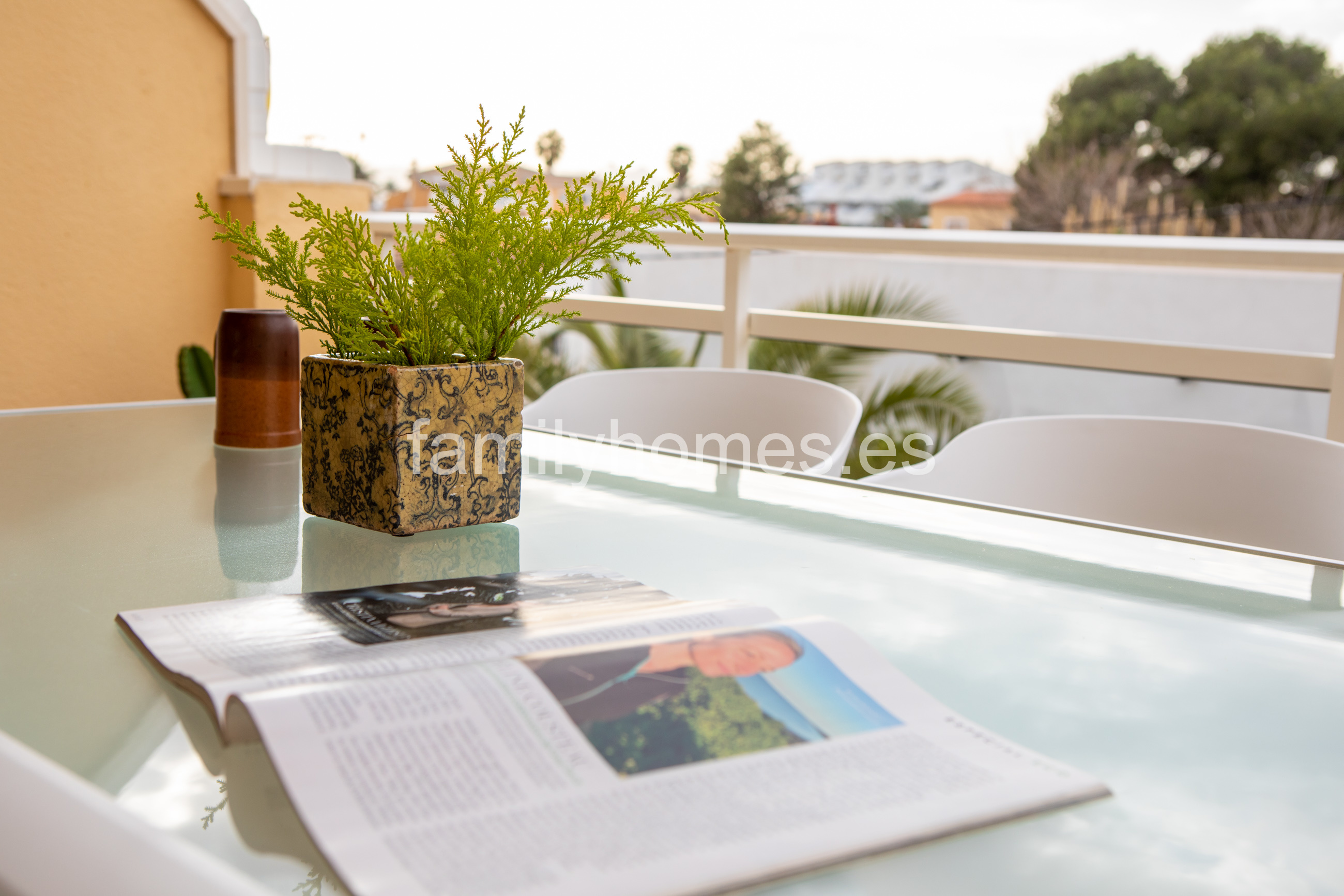 La vivienda dispone de ventiladores de techo en las hab. A/A en salón comedor y hab. principal. Plaza de parking privada cubierta en urbanización cerrada. La urbanización es tranquila y muy agradable, de ambiente familiar. Orientación de la terraza oeste.