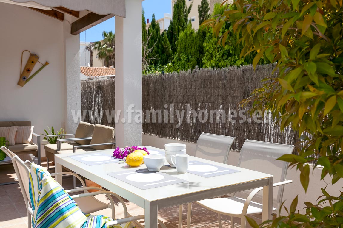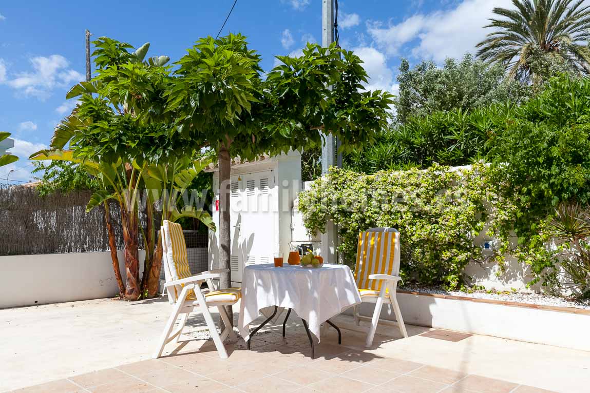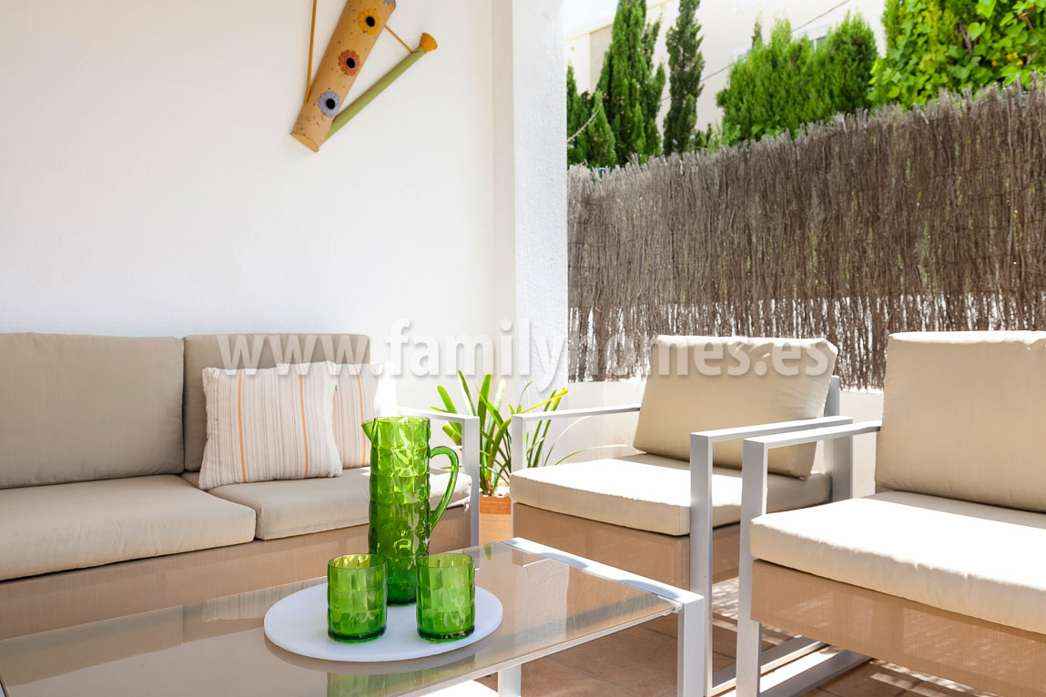 Ubicado en una tranquila urbanización familiar cerrada con solo cinco viviendas y a escasos 50 metros de la playa de arena de las Marinas en Dénia, con acceso directo. Este acogedor apartamento en planta baja cuenta con dos habitaciones dobles, una con cama de matrimonio (135 cm) y otra con dos camas individuales, baño con ducha, un luminoso salón comedor y cocina independiente completamente equipada. La vivienda disfruta de una amplia teraza de 35m2 descubierta mas 5m2 cubierta. Wifi y plaza de parking incluidos.