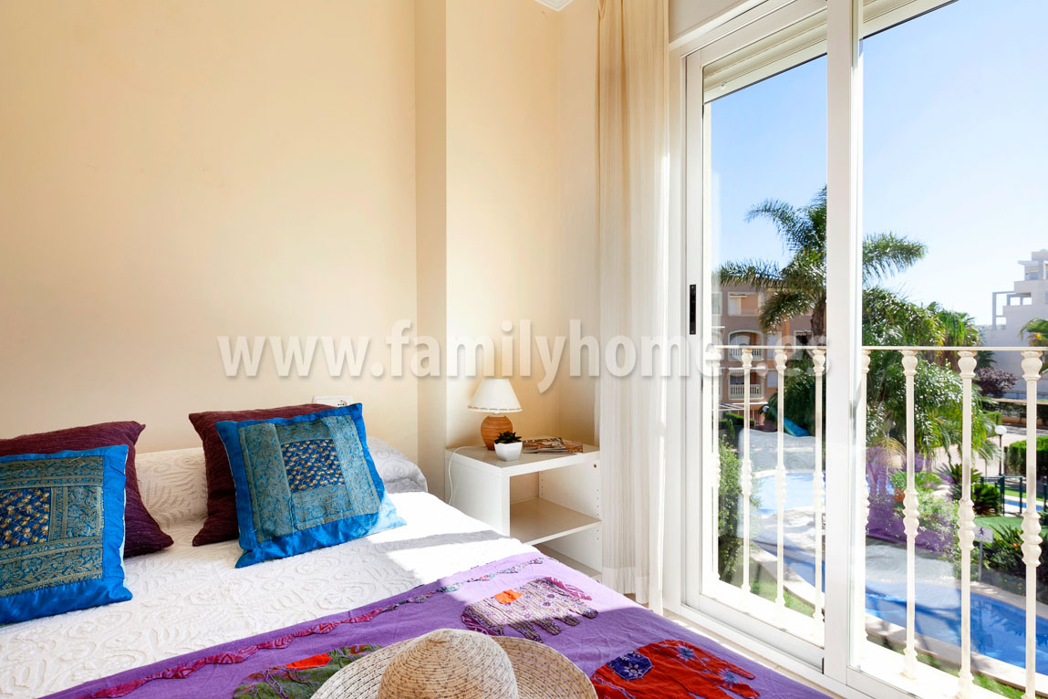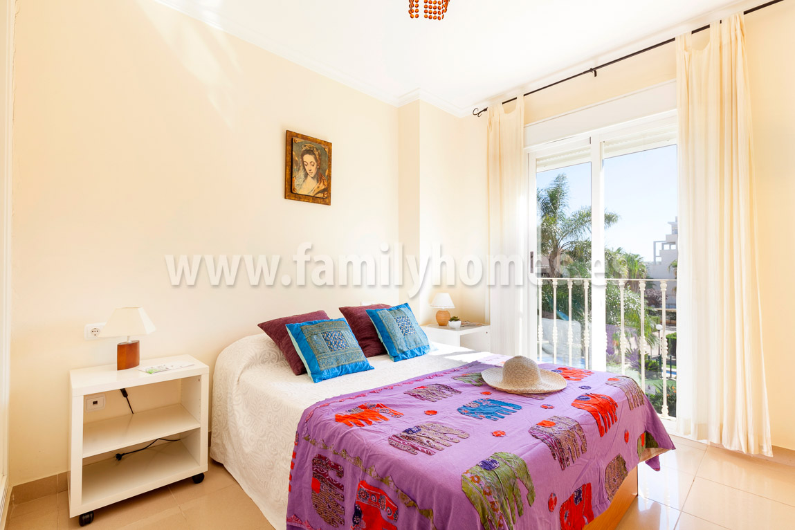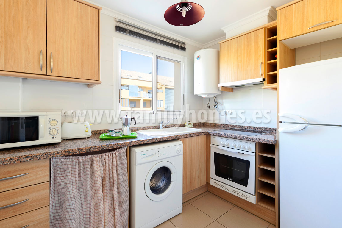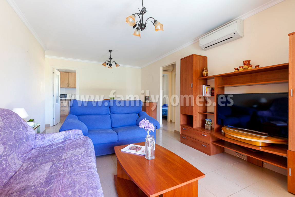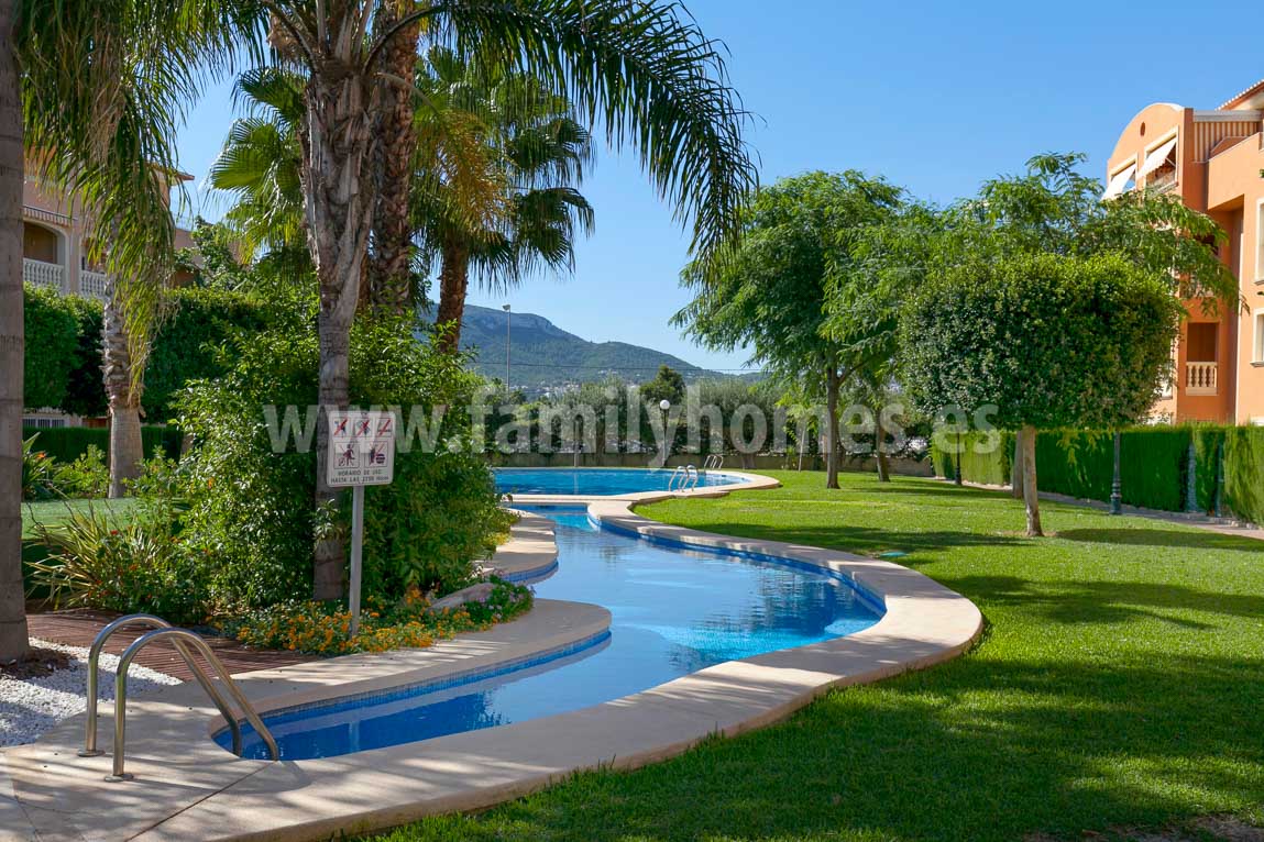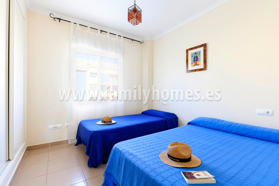 Luminoso apartamento para 4 personas en Dénia, situado a 400 m. de la playa de arena de Las Marinas en una familiar y tranquila urbanización. La vivienda, con 70 m2, dispone de dos habitaciones dobles, una con cama de matrimonio y otra con dos camas individuales, baño con bañera, aseo, cocina independiente, salón comedor y una agradable terraza con unas magníficas vistas a la zona común. El complejo cuenta con una gran piscina comunitaria, piscina infantil, jacuzzi, jardín mediterráneo y plaza de parking privada.