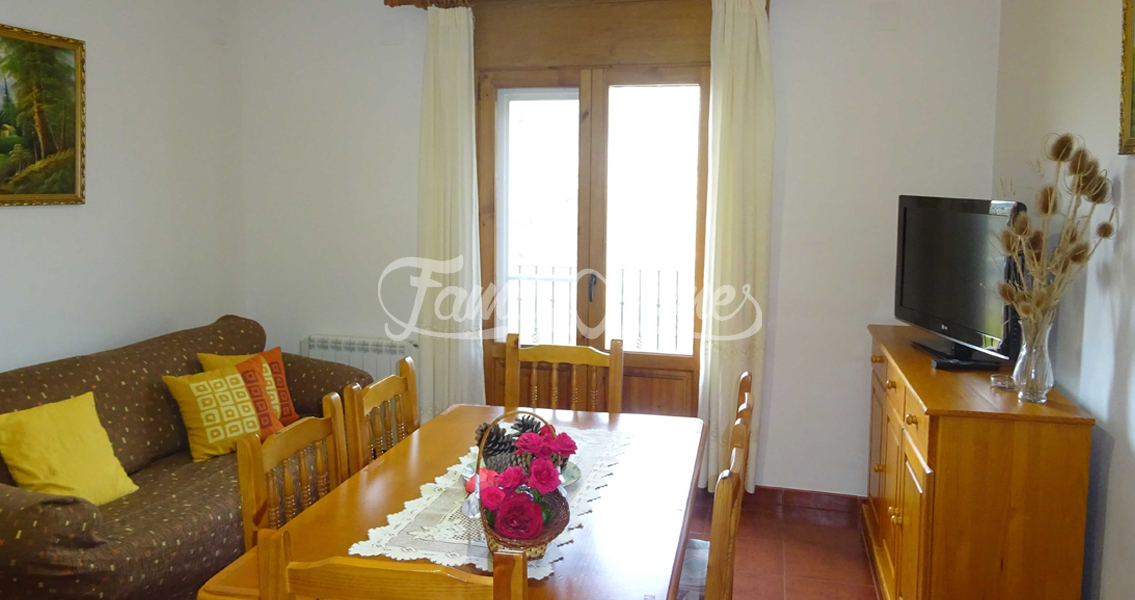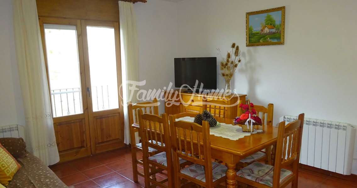 Apartamento rural disponible durante todo el año con capacidad para 6 personas. Está ubicado en el centro urbano de Alcalá de la Selva a tan solo 10 minutos de las pistas de esquí de Valdelinares. El apartamento dispone de 1 habitación doble con cama de matrimonio de 135cm. 1 hab. Doble con dos camas de 90cm y una tercera habitación con litera. 1 baño completo con ducha, cocina bien equipada, salón-comedor con fantásticas vistas abiertas y calefacción central.