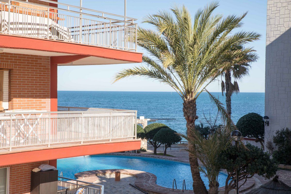 Fantástico apartamento en primera línea de playa de Las Rotas, en primera planta con capacidad para 6 personas. A/A en todas las estancias. Espacioso y luminoso salón comedor con cocina independiente y bien equipada. Salida directa a la amplia terraza con vista abierta a zona verde, orientación este. Gran piscina comunitaria con duchas y salida directa a la playa. Dispone 3 espaciosas hab. dobles, una con cama de matrimonio (150cm), otra con 2 camas individuales (90cm) y una tercera con una cama individual de 90cm y un sofá cama individual para una persona. 2 baños con ducha, uno de ellos en suite. Terraza con orientación norte y este, ideal para invierno y también orientación norte con una fantástica vista al mar muy fresca e ideal para disfrutar de comidas a la sombra en verano. La vivienda dispone de aire acondicionado y calefacción por Split frío/calor en todas las estancias. Wifi y parking privado cubierto. Suelo de parqué. La urbanización es de ambiente familiar, tranquila y muy agradable, ideal para viajar en pareja o en familia. A tan solo 10 metros (1min. a pie) de una de las mejores playas de roca de Dénia, a escasos 2 km del puerto, de la playa de arena y de todos los servicios (pequeño supermercado, prensa, cafetería, restaurantes, farmacia y otros). A 2.5km del centro de la ciudad, escasos 5 min. en coche. Varios restaurantes a proximidad.