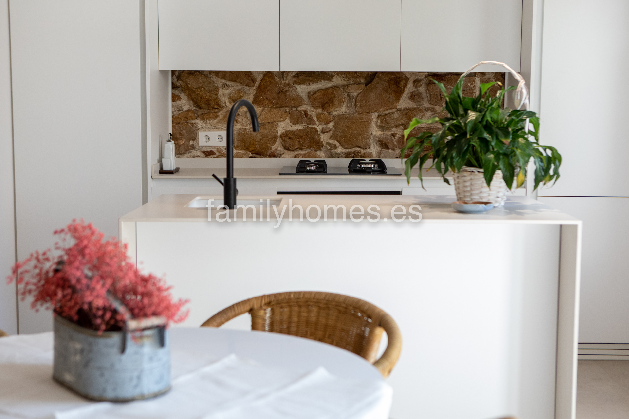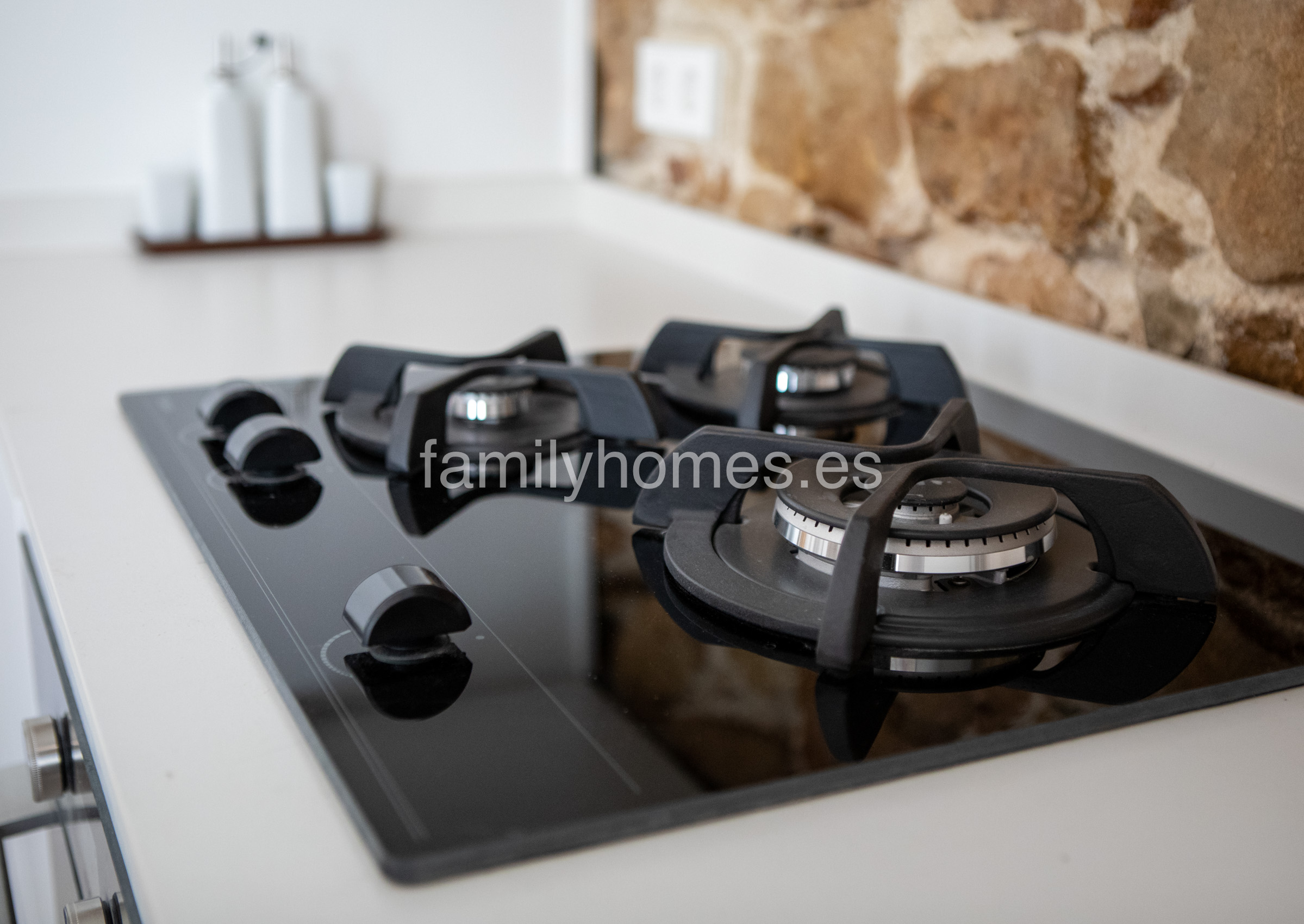 El comedor está situado junto a la cocina de estilo americano, cocina abierta que da amplitud y luminosidad a la vivienda. Está perfectamente equipada y dispone de fogones de gas para preparar tus comidas favoritas.