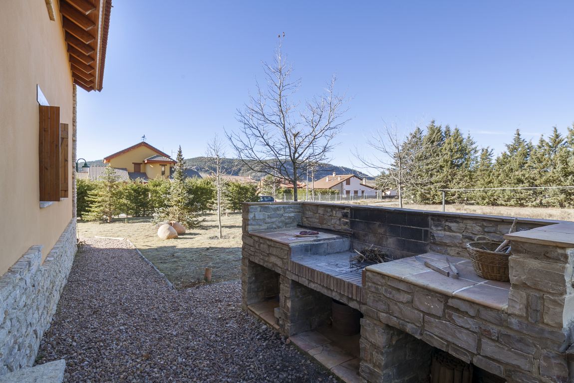 Acogedora casa para 4 personas situada a pie de pista de esquí en la estación de Valdelinares, en una tranquila urbanización con parcela privada de 900 m2, rodeada de montañas. La vivienda dispone de una habitación doble con cama de matrimonio, sofá-cama de dos plazas, baño con ducha, comedor, cocina abierta completamente equipada y una amplía terraza con excelentes vistas a la montaña con mobiliario de exterior, barbacoa y tumbonas. Dispone también de calefacción central.