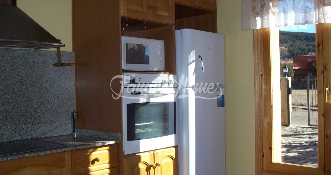 Casa rural situada a pie de pistas en Valdelinares (Teruel) con capacidad para 8 personas. La vivienda está equipada con calefacción central y distribuida en dos plantas. En la planta baja se encuentra el salón comedor con chimenea, amplia cocina completamente equipada y un aseo y en la primera planta, dos habitaciones dobles con cama de matrimonio, un habitación cuádruple con litera, cama nido y dos baños, uno con bañera, otro con ducha.
