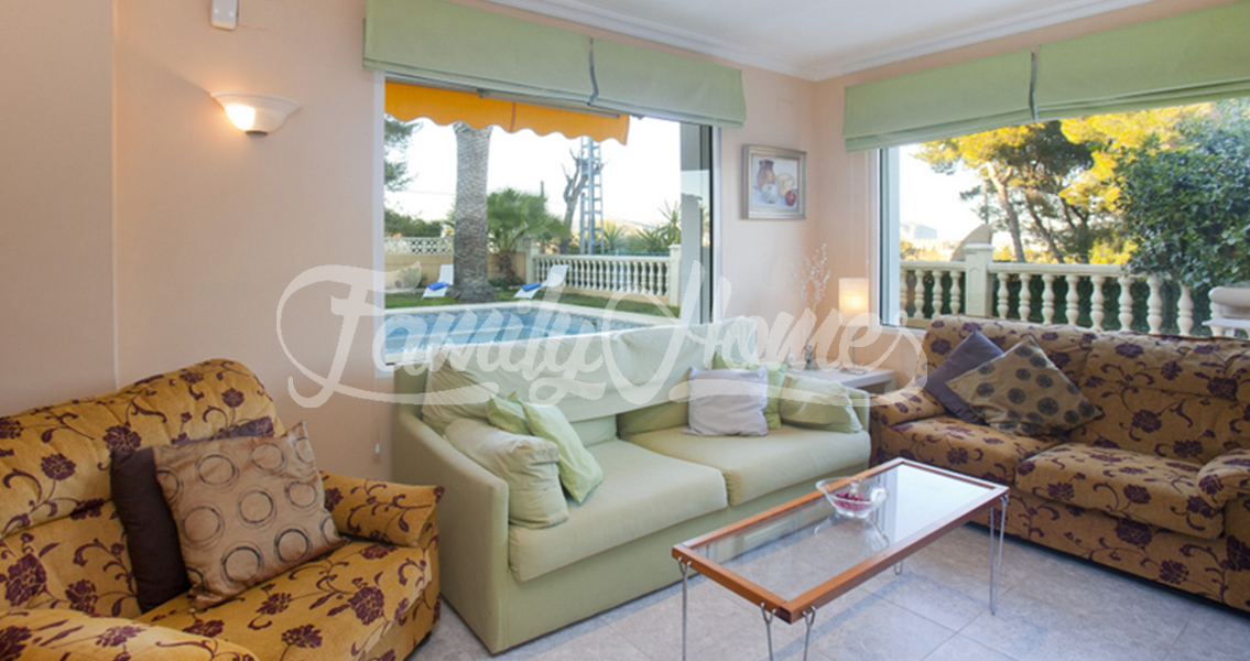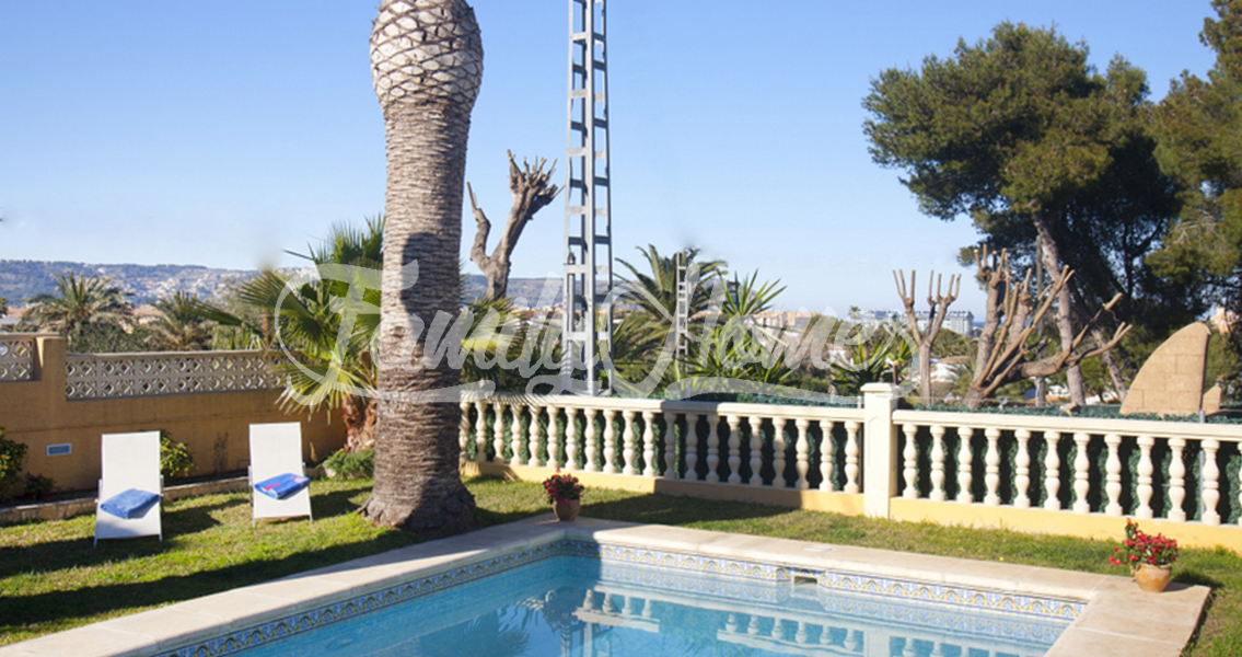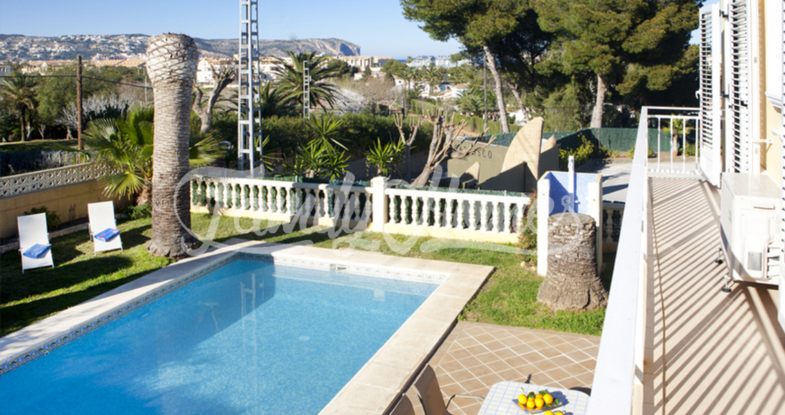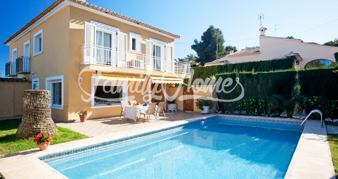 Amplia y luminosa villa para 5 personas en Jávea con piscina privada y jardín, a tan solo 700m de la playa de arena del Arenal (10min. a pie), perfecta para disfrutar de unas relajadas vacaciones en familia. La casa está distribuida en dos plantas, en la planta baja cuenta con un amplio salón con chimenea, cocina completamente equipada y comedor. En la primera planta dispone de tres habitaciones: una doble con cama de matrimonio, otra habitación doble con dos camas de 90 cm y una individual con cama de 90 cm. La casa cuenta con aire acondicionado, calefacción central por suelo radiante a gas, wifi, tv satélite, ducha con agua caliente en el exterior, barbacoa y magníficas vistas abiertas. Cercana a todos los servicios, supermercado, farmacia, restaurantes, etc.