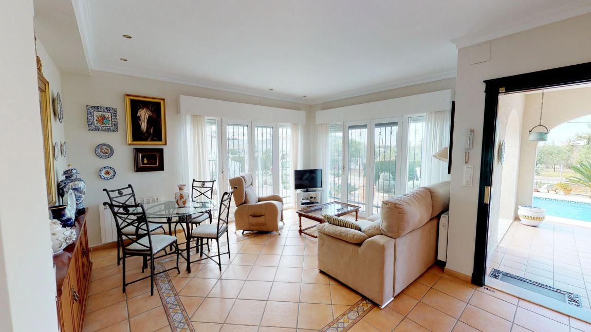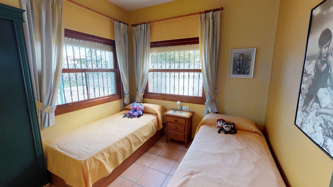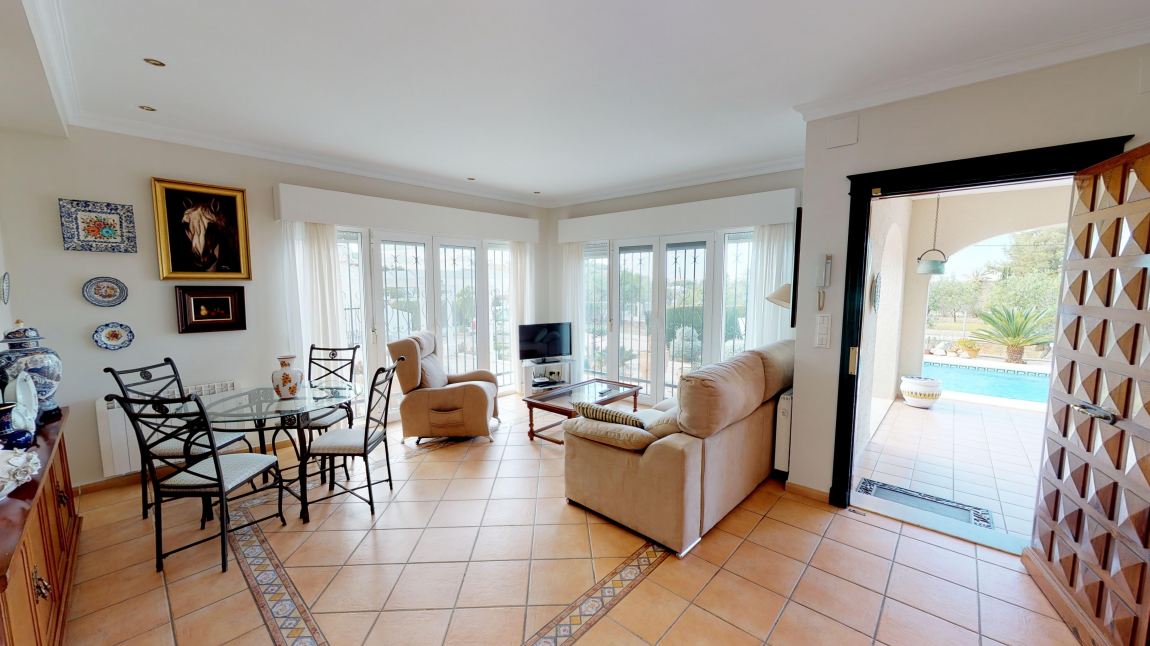 Sunny villa in Dénia for six people and a private pool. The house has three bedrooms, one double bedroom, en suite with bath, two double bedrooms with double beds, a bathroom with a shower, a fully equipped kitchen and a spacious and very bright living room.