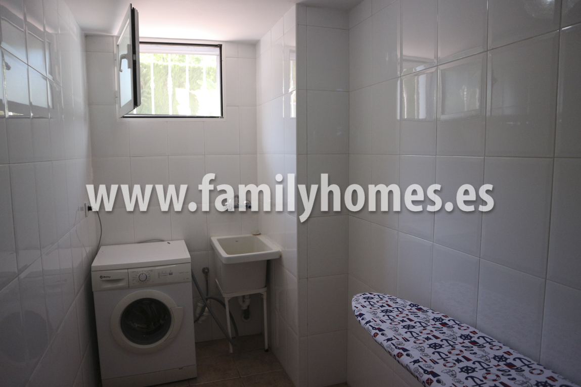 En la planta inferior: 2 habitaciones individuales, comedor, cocina, 1 baño con ducha y lavadero con lavadora y planchador.