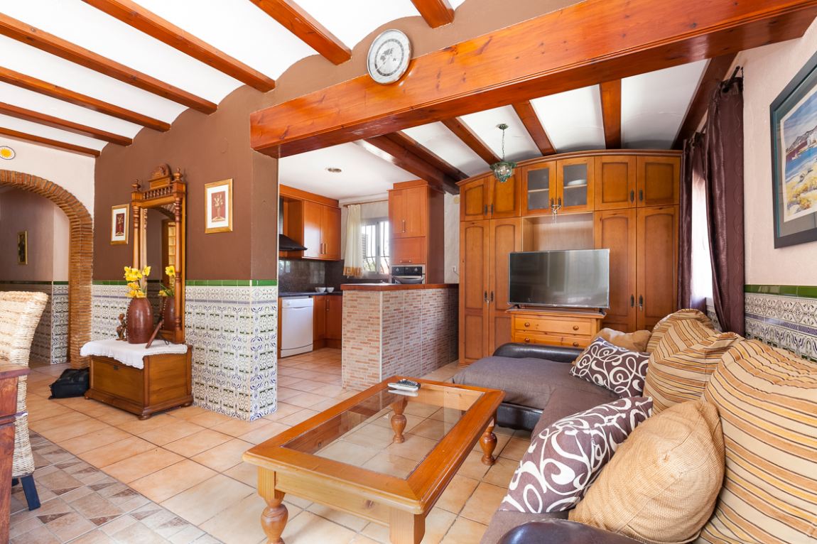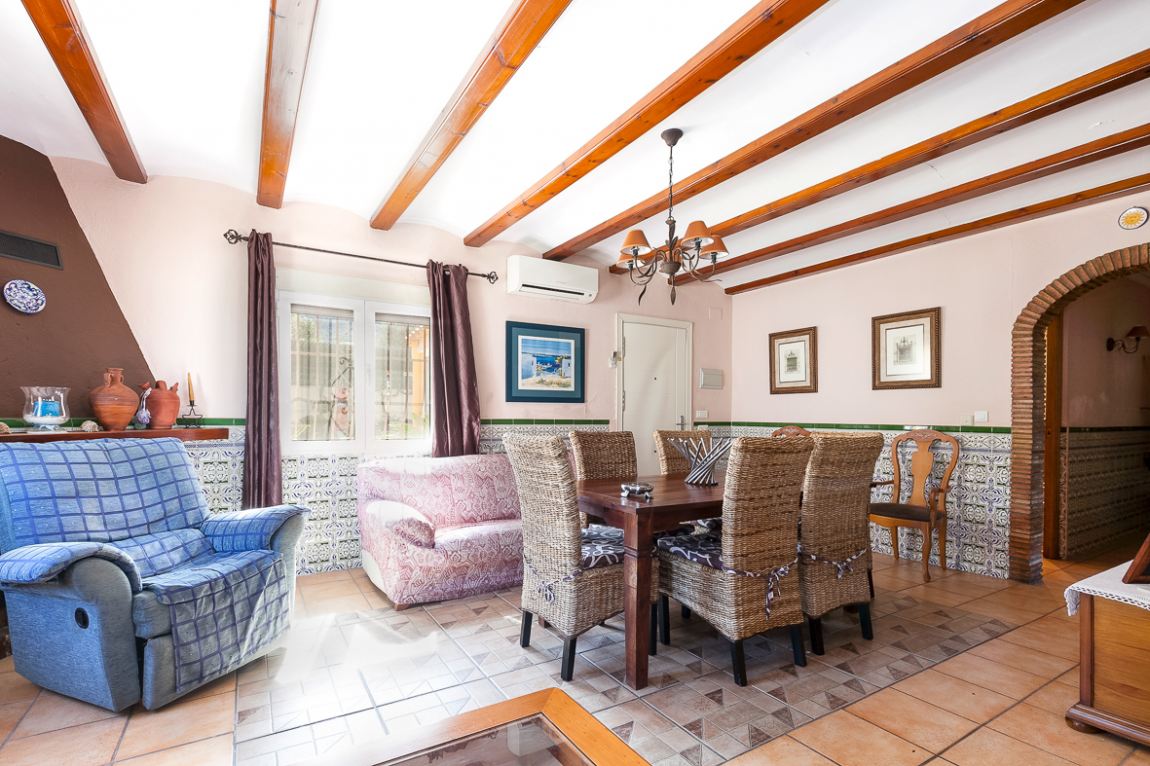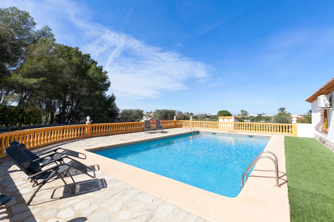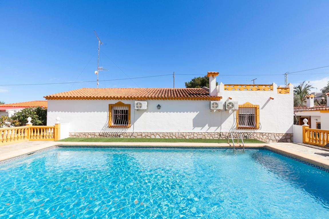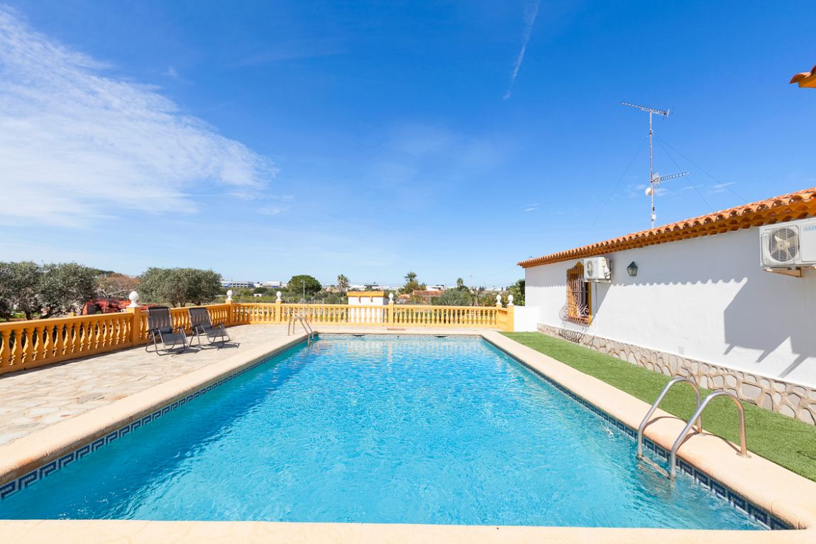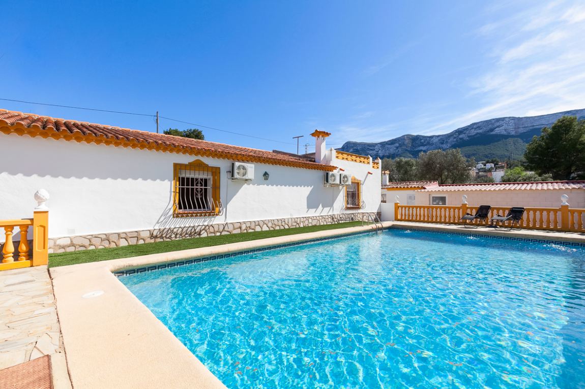 Acogedora y amplia villa para 8 personas en Dénia con vistas al Montgó y al castillo, perfecta para disfrutar de una relajadas vacaciones en familia. La casa está ubicada en una zona muy tranquila y cuenta con una piscina privada, Está distribuida en cuatro habitaciones, tres dobles y una con cama de matrimonio,dos con dos camas individuales y una tercera habitación sencilla con una cama individual (posibilidad de cama supletoria para una octava persona). Aire acondicionado en todas las habitaciones y salón comedor, cocina americana completamente equipada, baño con ducha de hidromasaje y wifi.