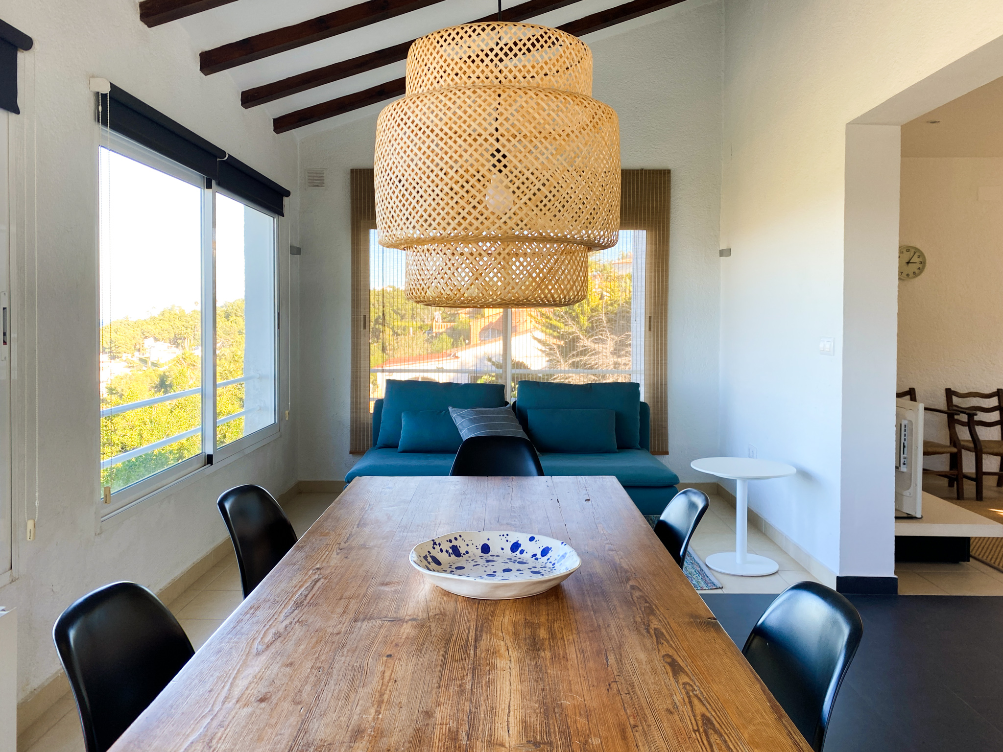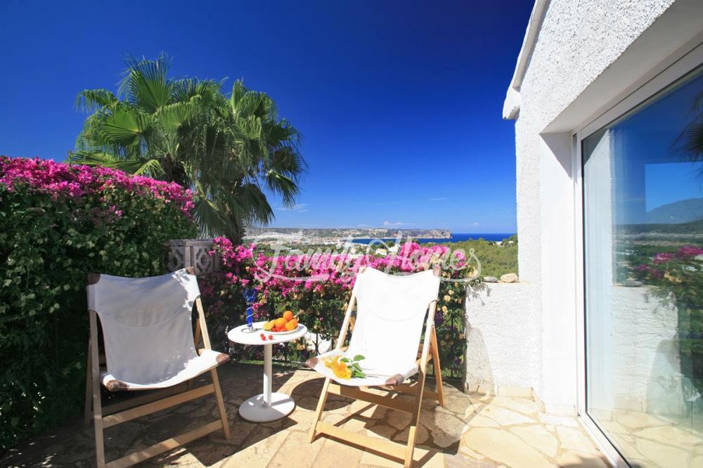 Villa para 6 personas con una ubicación privilegiada desde donde se tienen unas impactantes vistas panorámicas de toda la bahía de Jávea y del mar. La casa cuenta con 140m2 distribuidos en dos plantas y una magnífica parcela privada con jardín mediterráneo, barbacoa junto a la piscina y diferentes zonas exteriores para comer, cenar, tomar el sol…