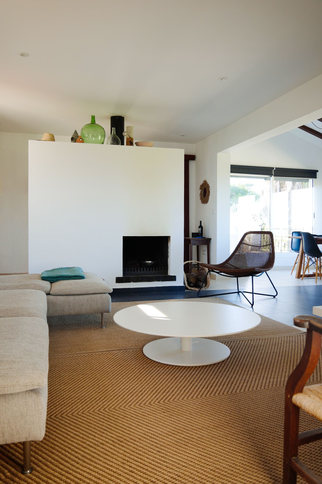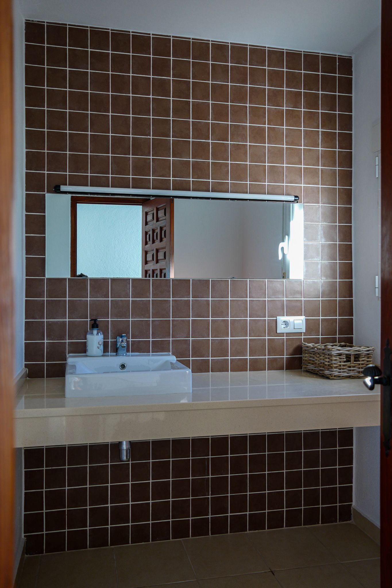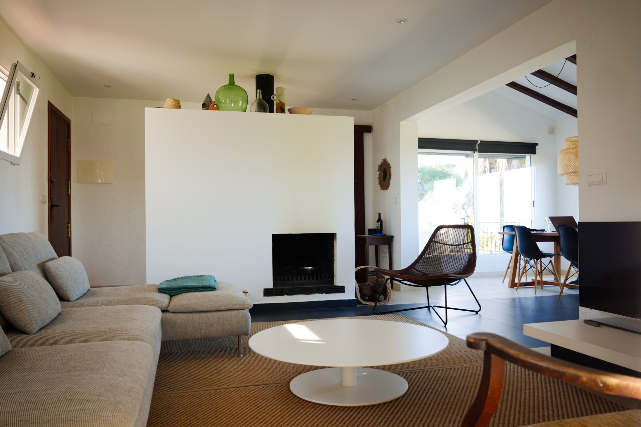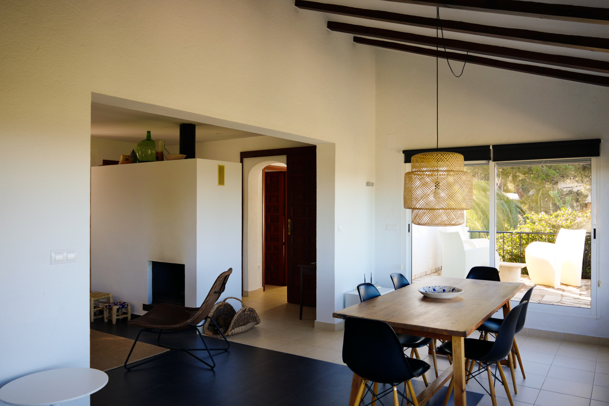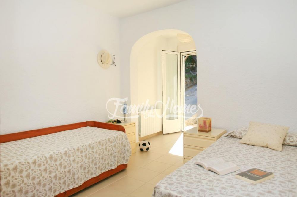 En la planta superior se encuentra el espacioso y luminoso salón comedor desde donde se tienen unas fantásticas vistas del mar, chimenea, una amplia cocina completamente equipada y un aseo. Las tres habitaciones dobles están ubicadas en la planta inferior, todas ellas con camas individuales y acceso directo al jardín y la piscina, también hay dos baños con ducha, uno de ellos en suite y un patio interior con lavdora y tendedero. Dispone de wifi y mosquiteras.