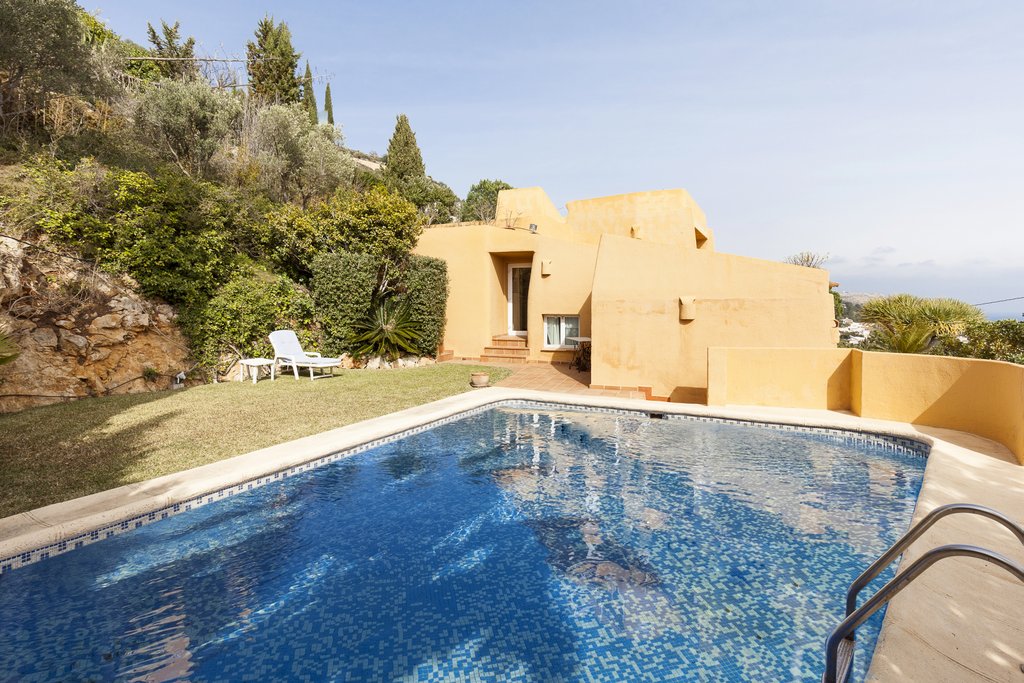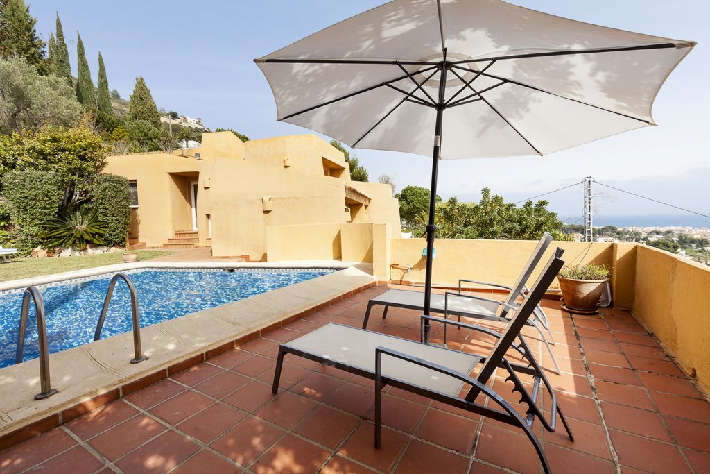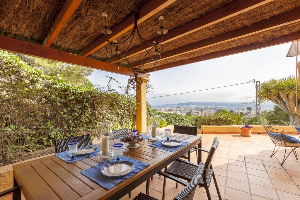 La casa dispone de un magnífico exterior con zona de jardín y piscina privada y varias terrazas y ambientes de exterior: zona solarium, comedor de exterior, zona de estar, barbacoa... todo equipado con mobiliario de exterior. Ubicación inmejorable a tan solo 500m del centro urbano y todos los servicios y a escasos 8 min. en coche de la playa. Zona residencial muy tranquila en calle sin salida, sin tráfico con impresionantes vistas al mar.
