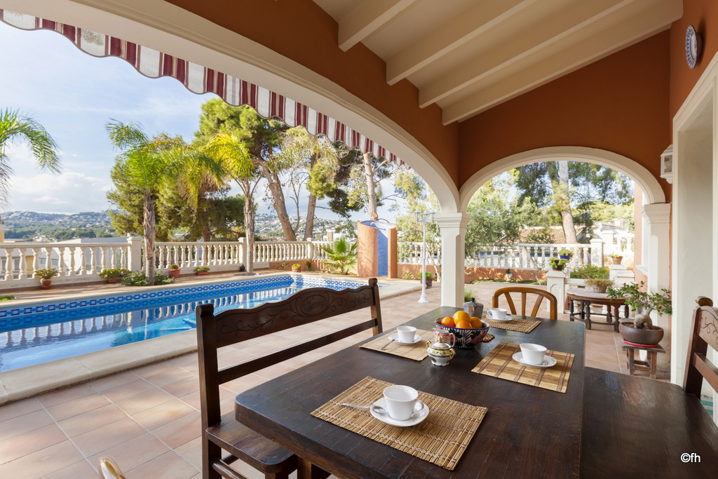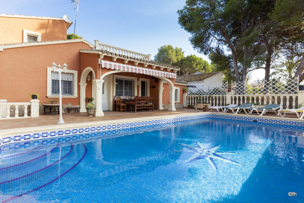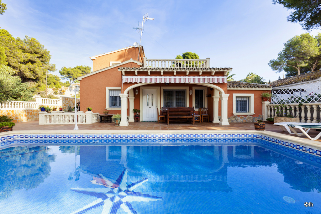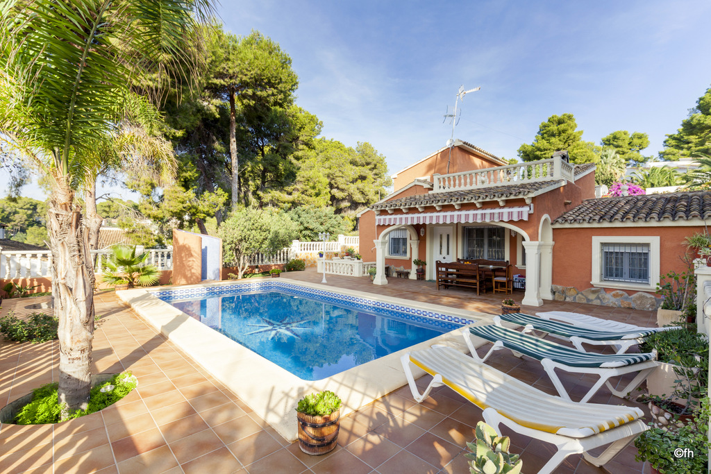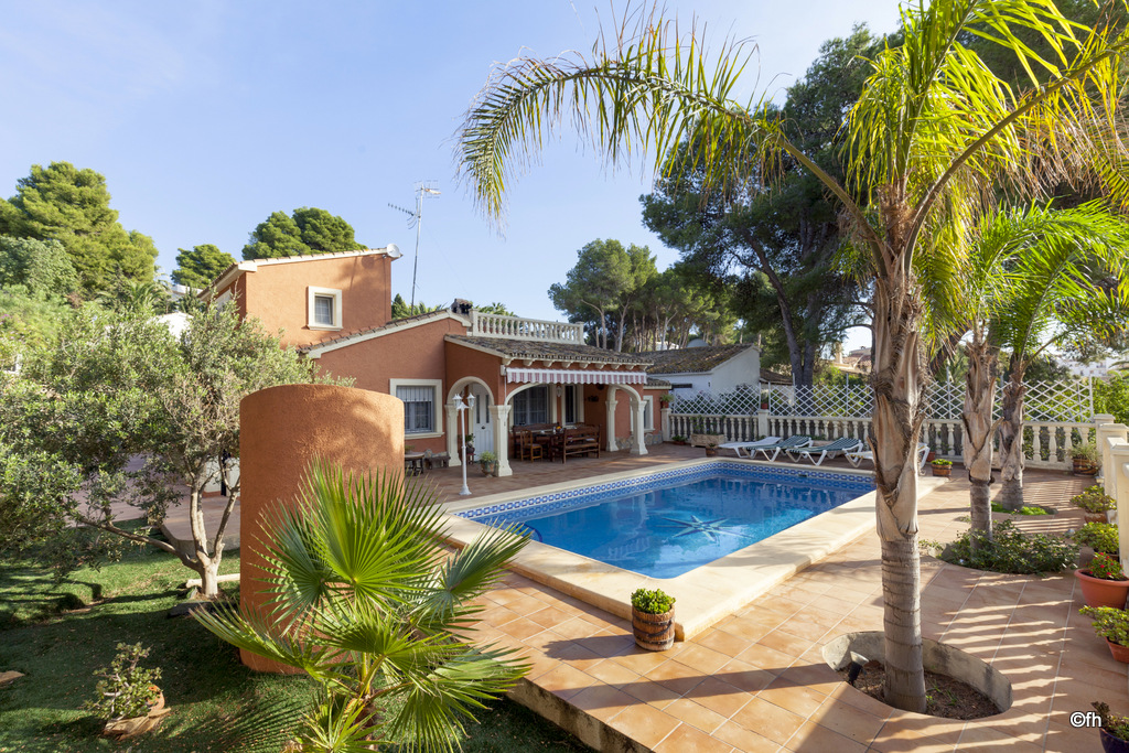 Fantástica Villa de 4 hab. para 8 personas en Moraira. Piscina privada. A escasos metros de la playa y del centro urbano de Moraira. Distribuida en dos plantas, en la planta inferior encontramos la cocina, amplio salón comedor con salida a la terraza. 3 habitaciones, dos de ellas con dos camas individuales de 90cm y la tercera con cama de matrimonio de 150cm. Dos baños con ducha. En la planta superior con acceso externo e independiente, tiene una habitación doble con cama de matrimonio de 150cm, baño privado con ducha. Terraza privada con vista abierta muy agradable.