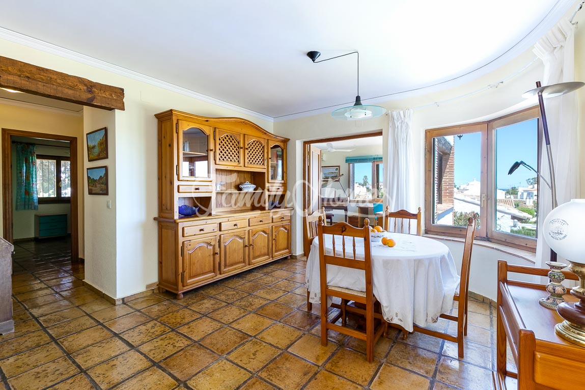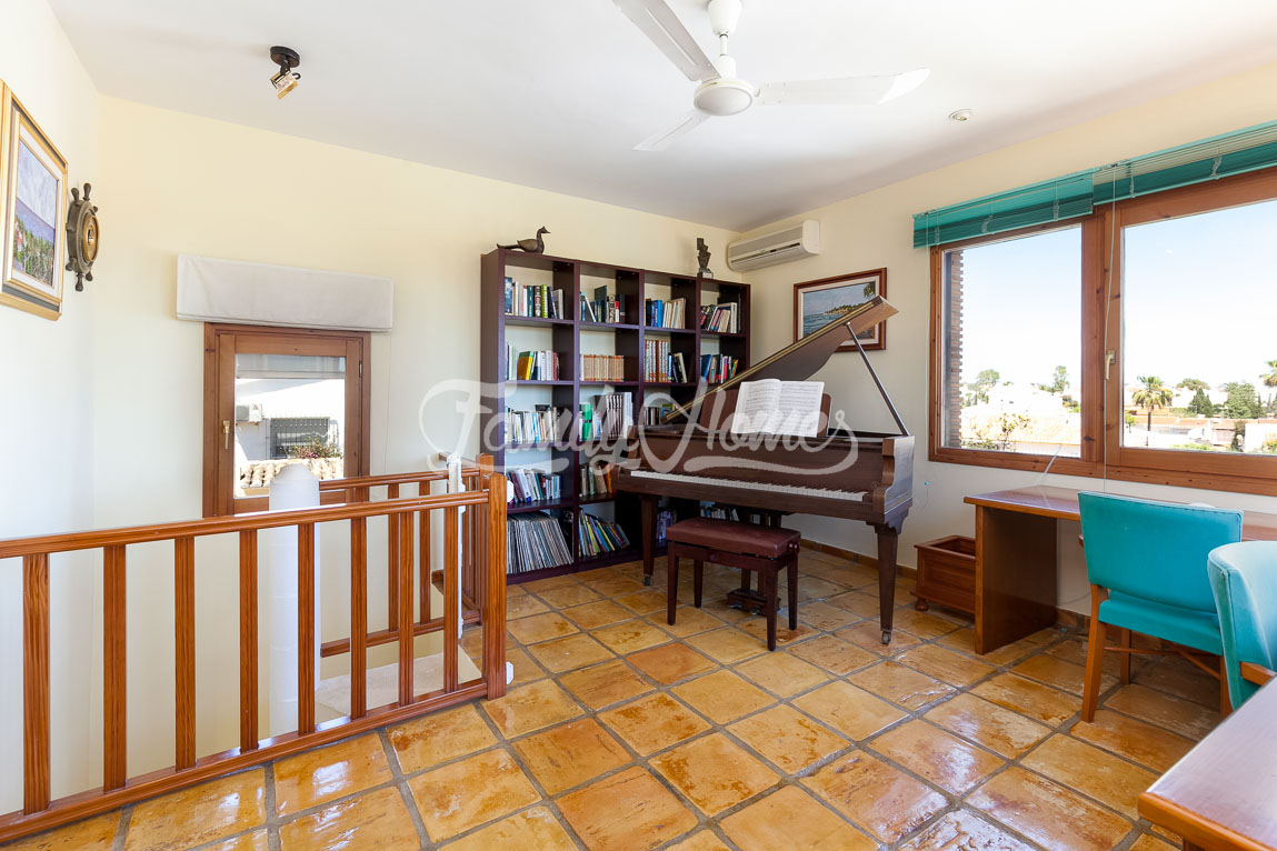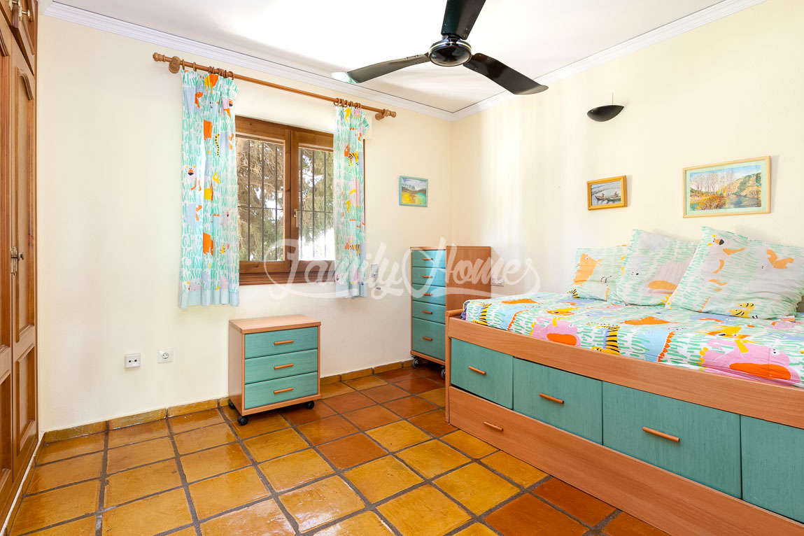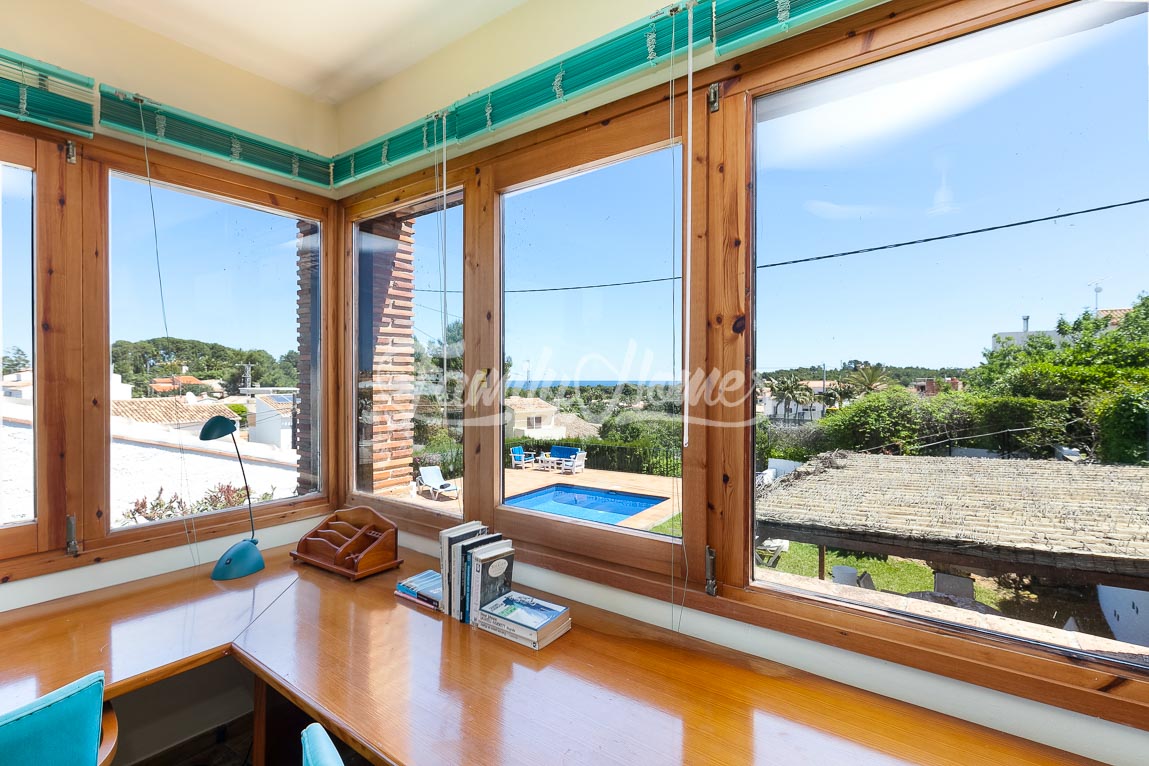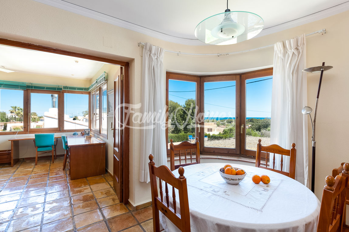Villa con mucho encanto ubicada en una de las mejores zonas de Dénia, capacidad para 6 personas. Distribuida en dos plantas. En la planta superior, encontramos un amplio salón con TV, música, zona de estar y salida a la terraza cubierta equipada con mobiliario de exterior ideal para comer y jardín. Comedor con vista al mar con capacidad para 6 comensales junto a cocina abierta perfectamente equipada con lavavajillas. Dos habitaciones dobles, una con cama de 150 cm y baño ensuite con ducha y una habitación doble con 2 camas de 90 cm (una de ellas nido) y un baño con bañera. Luminoso estudio con piano, librería y gran ventanal con vista a la piscina y al mar, ideal para disfrutar leyendo y desconectar.